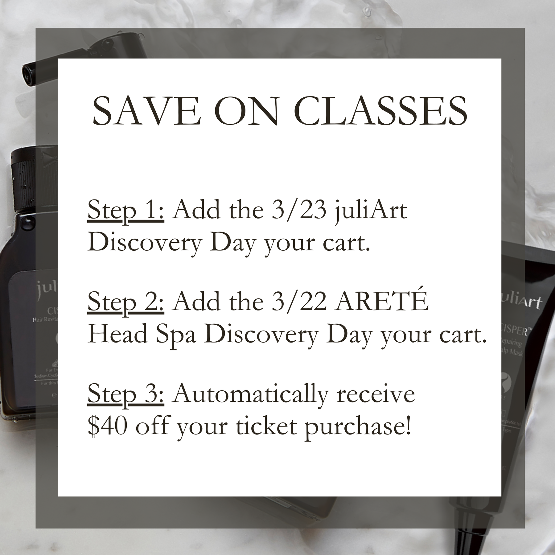 Throughout the day, guests will explore juliArt’s clinically-proven approach to scalp care through education and live demonstration. The day begins with an inside look at the brand's philosophy and purpose behind the juliArt mission. The journey continues with hands-on sessions introducing the essential head spa tools and principles. The session finishes with a model demonstration that blends science, nature, and self-care.